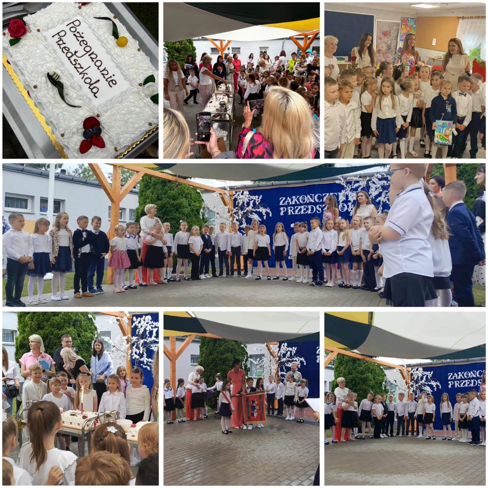 Pomimo deszczu dzieci dzielnie wystąpiły, pokazując, że nawet w trudniejszych chwilach nie tracą radości i odwagi. Ich występ był pięknym przypomnieniem, że zawsze po deszczu wychodzi słońce. Był to wyjątkowy dzień, pełen wzruszeń, uśmiechów i wspomnień. Uroczyste pożegnanie naszych przedszkolaków, którzy już wkrótce wkroczą w szkolne progi, pokazało jak wiele już osiągnęli, jak dojrzeli i jak pięknie się rozwijają. Jesteśmy dumni i życzymy im samych sukcesów oraz pięknych chwil na nowej, szkolnej drodze!
