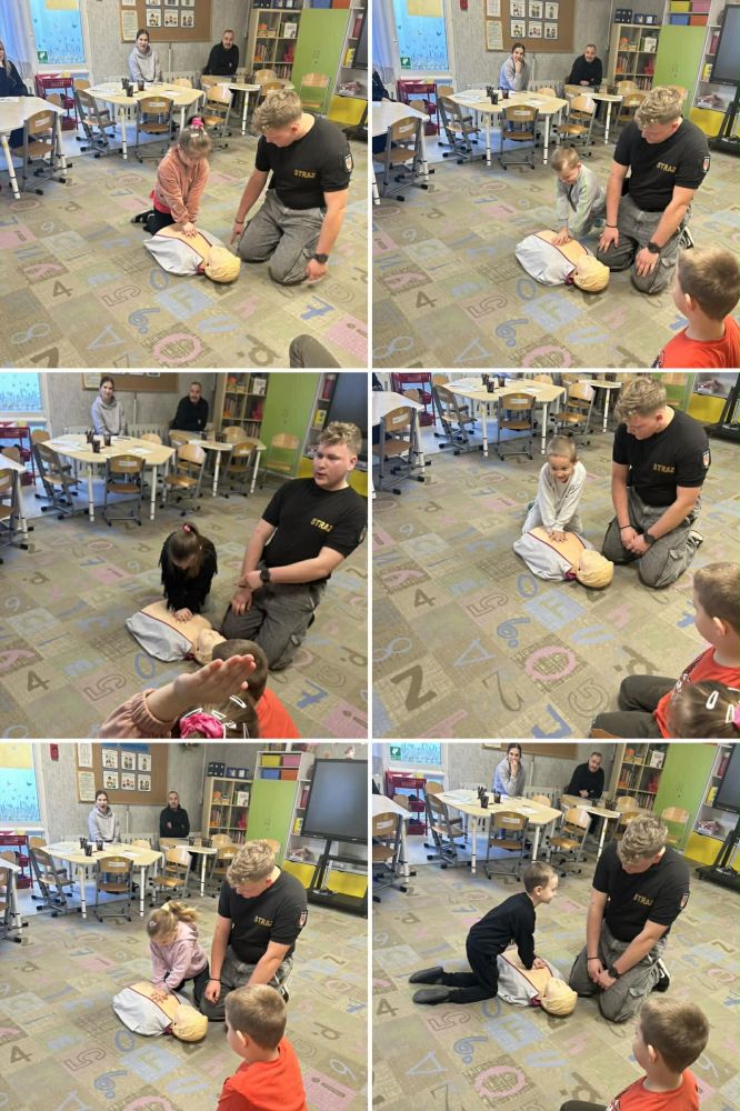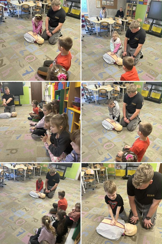 Dzieci oraz pracownicy naszego przedszkola biorą udział w programie ,,Akcja od serca- pierwsza pomoc", którego celem jest zapoznanie najmłodszych z podstawowymi zasadami udzielania pierwszej pomocy. W ramach przedsięwzięcia każda grupa przedszkolna bierze udział w specjalnie przygotowanym szkoleniu, dostosowanym do wieku i możliwości dzieci. Podczas zajęć przedszkolaki poznają zasady bezpiecznego zachowania w sytuacji zagrożenia, nauczą się wzywać pomoc oraz dowiedzą się, jak reagować, gdy ktoś potrzebuje wsparcia. Program ma na celu budowanie świadomości, odpowiedzialności oraz odwagi w podejmowaniu właściwych działań. Dzięki takim inicjatywom dzieci uczą się, że pomaganie innym jest ważne i każdy - nawet najmłodszy - może stać się bohaterem.